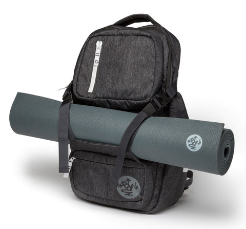 Manduka’s GO Free backpack is a fresh and functional hybrid of backpack and mat carrier that combines comfort with innovative design