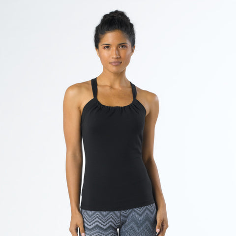 more from: prAnaMade from our most technical fabric, the prAna Quinn Chakara Top is quick-drying, abrasion resistant, and offers form-flattering shape retention in one easy-care top. Attractive scoop neck design with unique double strap racerback and internal shelf bra will have you practicing yoga and cross-training in supportive style.